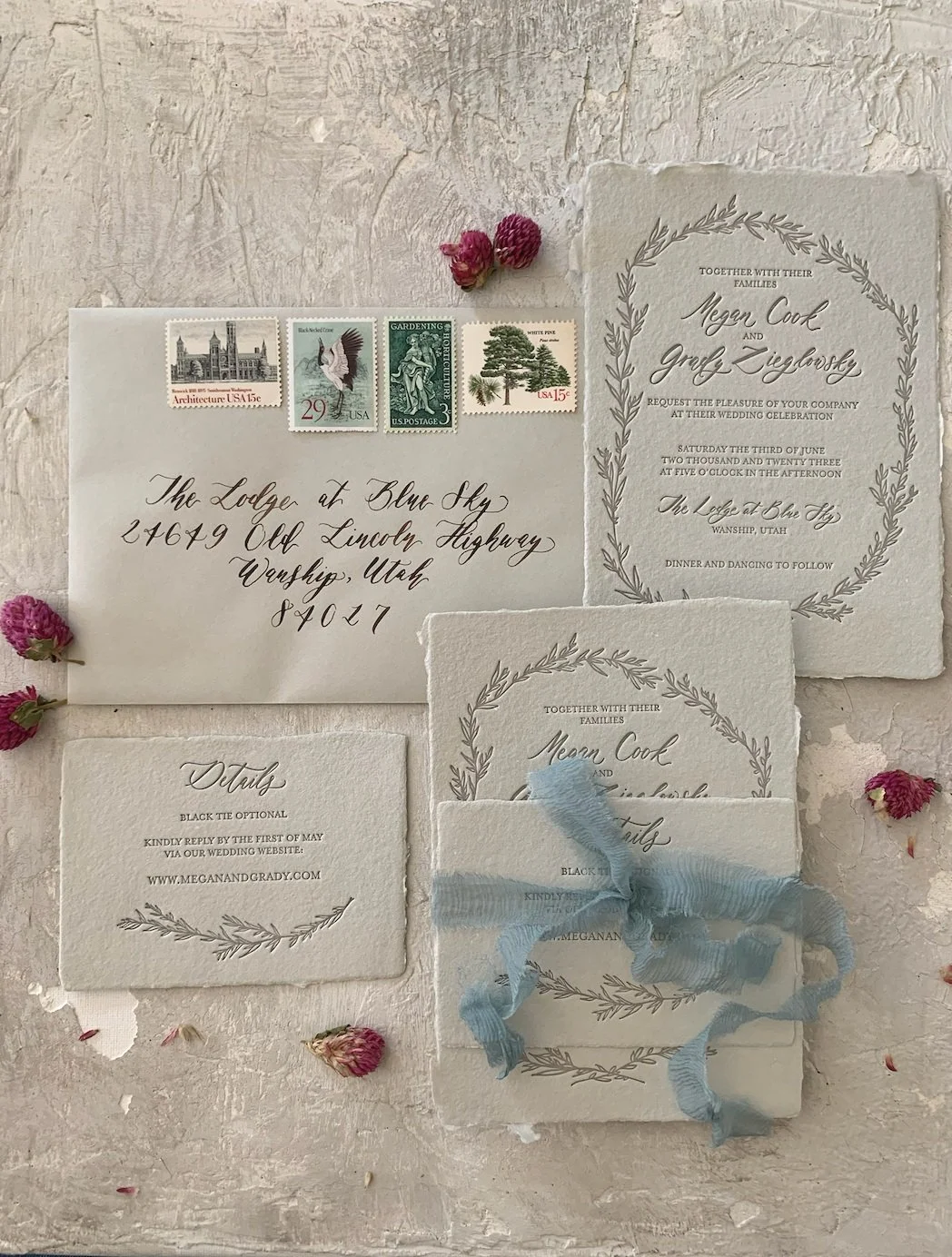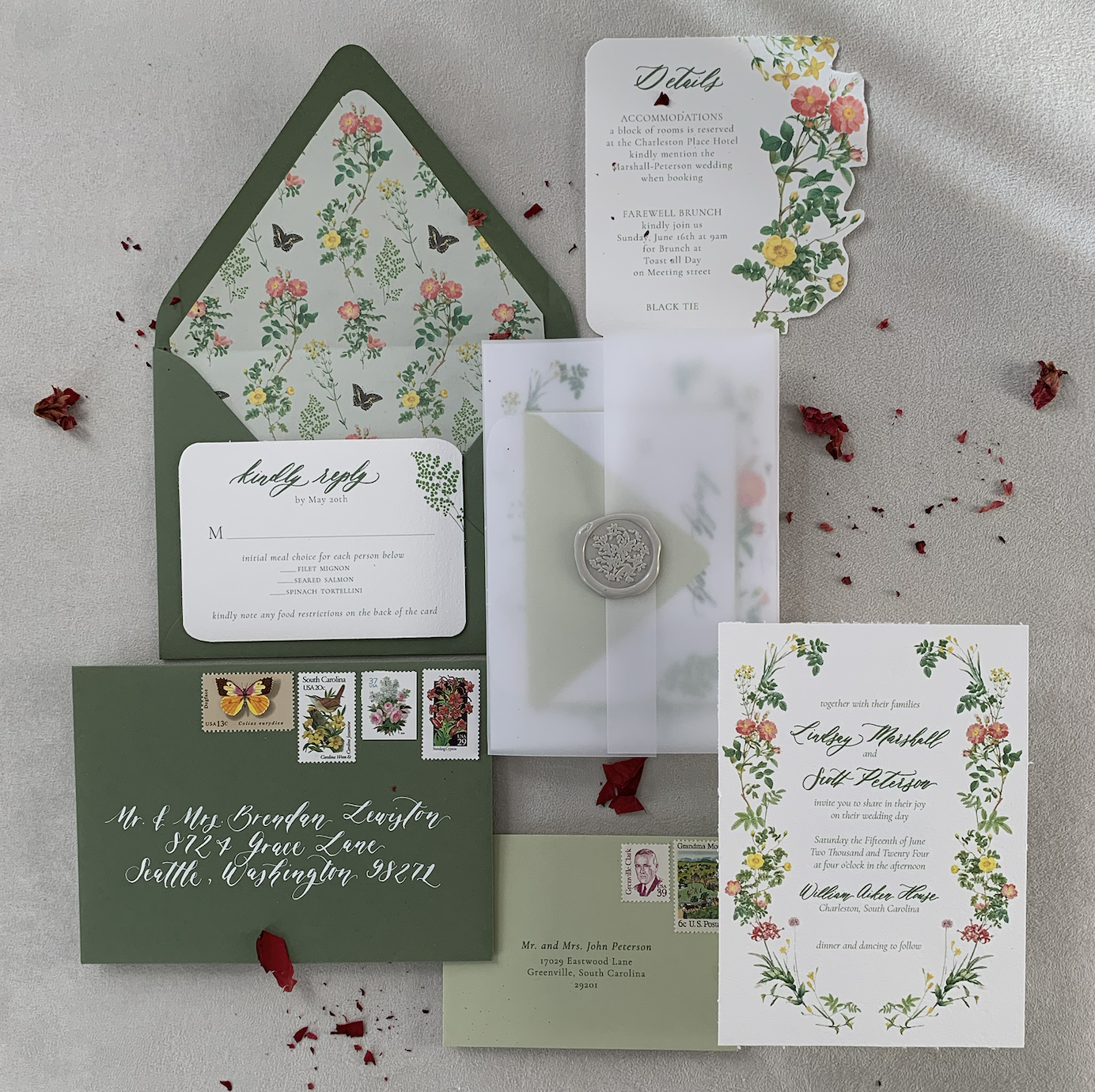 The following suites are a base from which we work together with you to customize to fit the aesthetic of your wedding. Each suite is thoughtfully designed & includes our signature calligraphy, custom-designed elements and curated finishing touches to elevate your suite.
